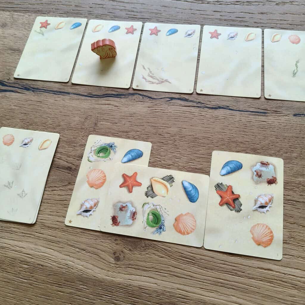 Fase 4: Verplaats de golf 1 plekje verder weg van Hermit tenzij je Hermit hebt verplaatst én 2 dezelfde schelpen of zeesterren naast elkaar hebt geplaatst. Verplaats de golf dichter naar Hermit toe wanneer je 2 poeltjes naast elkaar hebt geplaatst.