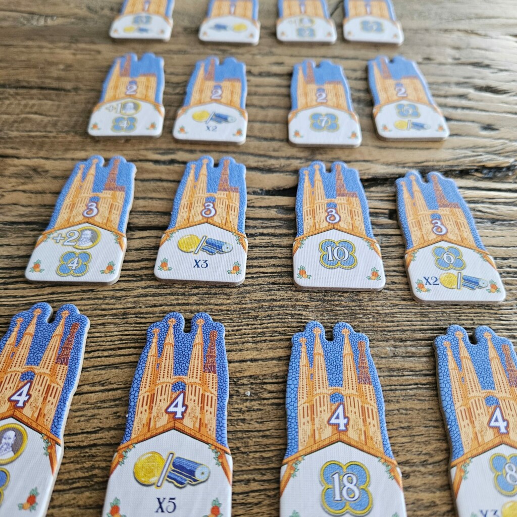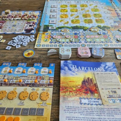 Barcelona is een kleurrijk spel met heel veel opties en mogelijkheden. Het unboxen ervan was werkelijk één groot feest; zoveel fiches, kaartjes, geld en speelborden zie je zelden! Eerlijk is eerlijk, het is een prijzig spel. Is het z’n geld waard? Absoluut. Dit spel bevat zoveel onderdelen dat je kan gewichtheffen met de doos. Scheelt je weer een sportschoolabonnement 😉