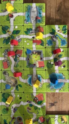 Het maakt niet heel erg uit hoe je een tegel neerlegt. Iedere kant van de tegel past aan alle andere tegels. Uiteraard zijn sommige keuzes wel beter om het spel snel te kunnen winnen, maar ik merk dat mijn dochter eerst vooral bezig was met een zo mooi mogelijke weg te maken. Ze aasde vooral op te tegels met kastelen er op. Nu ze iets ouder aan het worden is en bekend is met het spel probeert ze echt te winnen.