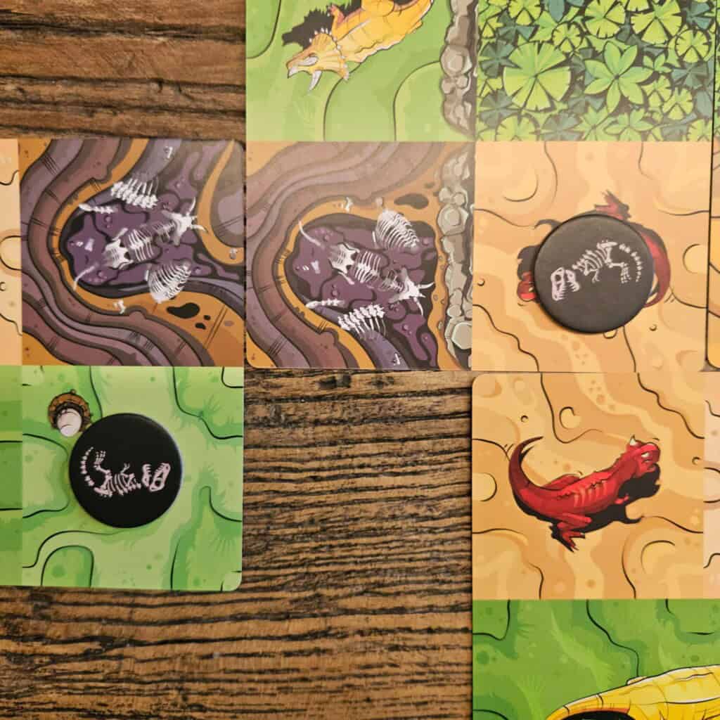 Voordat je punten gaat tellen, moet je eerst bepalen welke dino’s sterven. Op alle gestorven dino’s leg je een Fossielfiche.