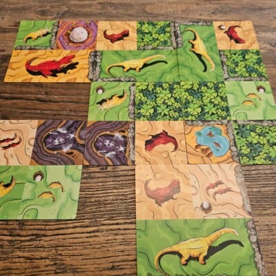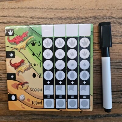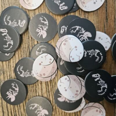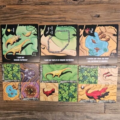 Voordat je punten gaat tellen, moet je eerst bepalen welke dino’s sterven. Op alle gestorven dino’s leg je een Fossielfiche.