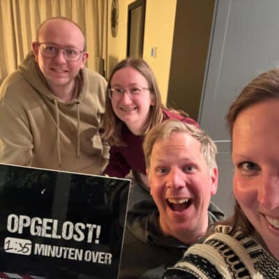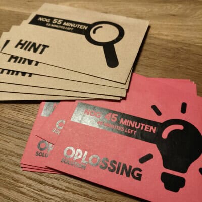 Binnen 10 minuten kun je alles klaarzetten. Je verspreid de meegeleverde voorwerpen door de kamer, legt de handleiding, tips en oplossingen op tafel en zorgt ervoor dat er een scherm beschikbaar is waarop de introductievideo klaarstaat. Daarna kun je beginnen.