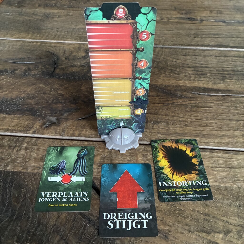 Er blijft een geluksfactor in het spel, het is altijd maar afwachten welke dreigingskaarten je aan het eind van je beurt trekt. Maar als je dit ziet als de jungle die reageert op jouw actie hoort dit juist bij het verhaal. Toen we het spel voor de tweede keer speelden dachten we de meterklem niet meer op beginner te hoeven plaatsen maar dat hebben we geweten. Binnen de kortste keren waren we uitgeschakeld. Dit liet wel weer even zien dat het echt niet eenvoudig is.