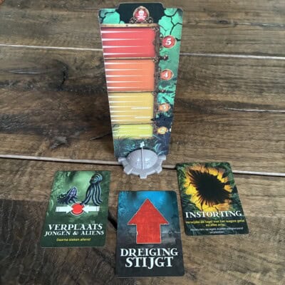 Aan het eind van je beurt pak je zoveel dreigingskaarten als aangegeven op de dreigingsmeter en voer je onmiddellijk uit wat er aan opdracht op staat. Hiernaast de volgende speler aan de beurt.