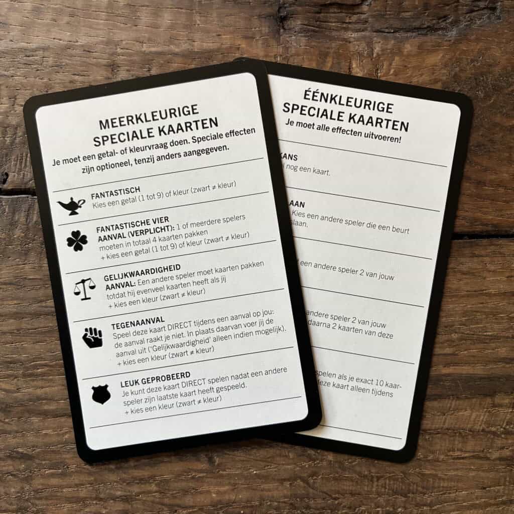 Naast gebeurteniskaarten zijn er ook nog speciale kaarten. Heeft een speciale kaart 4 verschillende kleuren dan mag hij op elke willekeurige kaart gespeeld worden. Heeft de speciale kaart een enkele kleur dan mag deze alleen gespeeld worden als de laatst gespeelde kaart dezelfde kleur heeft.