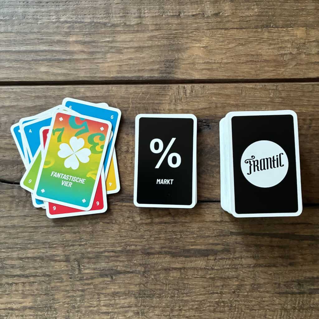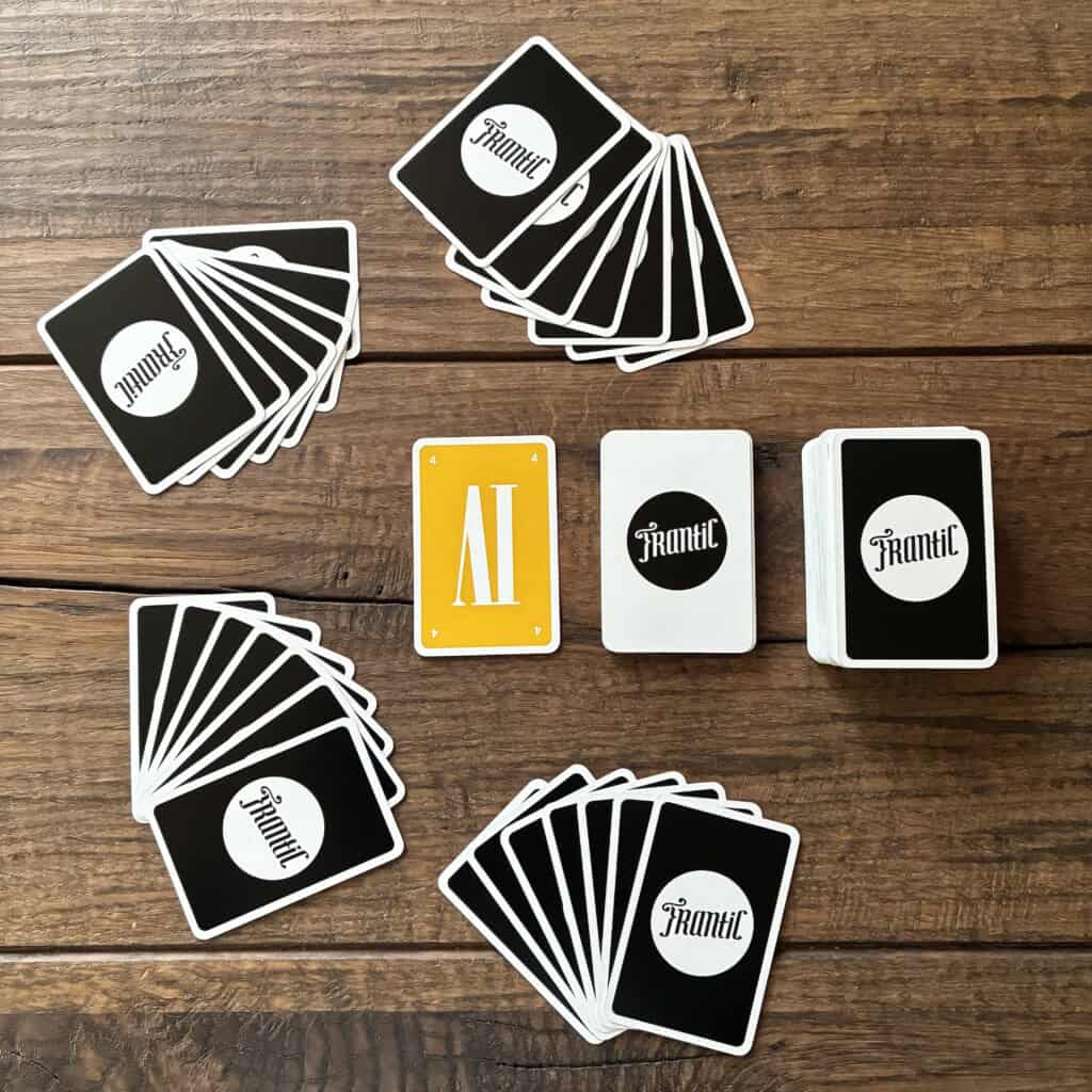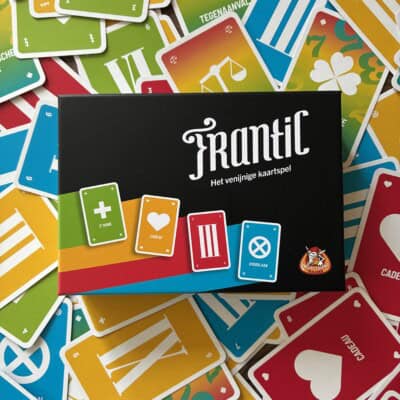 Frantic is een kleurrijk en chaotisch kaartspel uitgegeven door White Goblin Games. Je speelt het al met 2 personen maar met hoe meer personen (tot 8 personen), hoe leuker! Het spel bestaat uit enkel een hele grote stapel kaarten dus handig om mee te nemen en je legt het makkelijk neer.