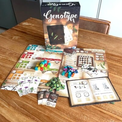 Er zit trouwens ook nog een solo variant in, mocht je op een avond geen speelmaatje kunnen vinden. Genotype is een ideaal spel voor spelers die een beetje uitdaging in een spel zoeken, maar niet uren aan tafel willen zitten. Het is echt een uniek spel, maar qua moeilijkheidsgraad zou je het een beetje kunnen vergelijken met Architecten van het westelijk koninkrijk of Taveernen van de oude stad.