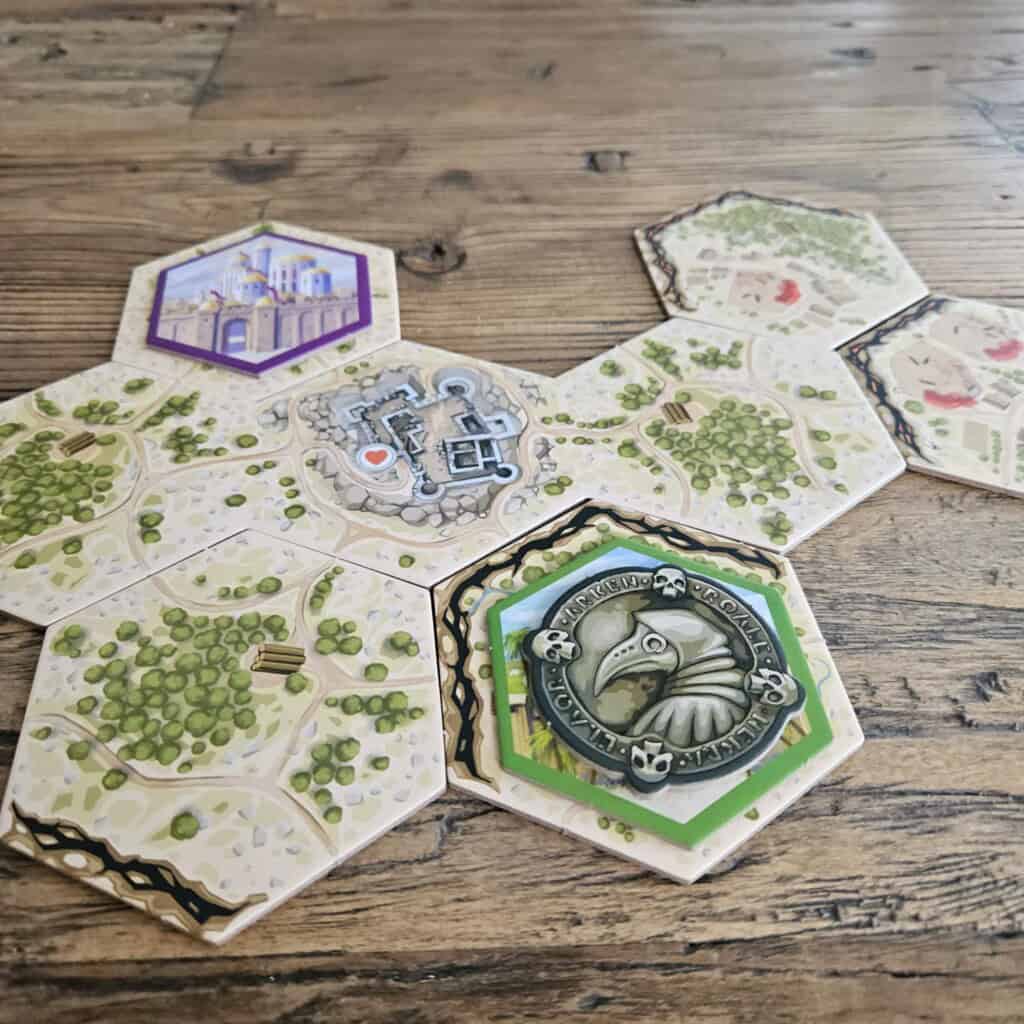 Op tegels zonder monsters of steden mag een speler de afgebeelde grondstoffen uit de voorraad pakken.