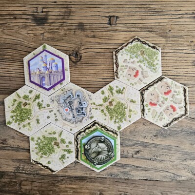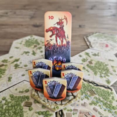 Op tegels zonder monsters of steden mag een speler de afgebeelde grondstoffen uit de voorraad pakken.