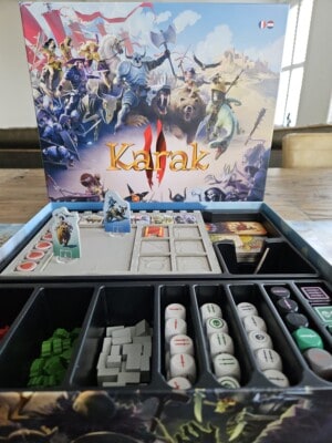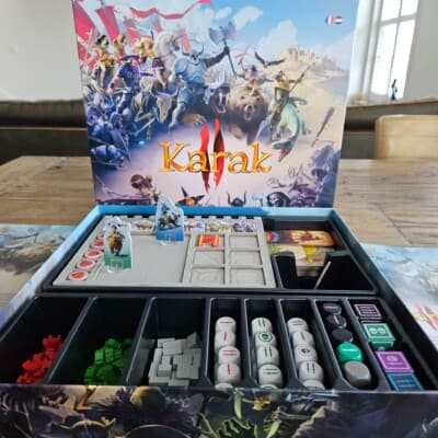 Karak II is één en al avontuur en is een spel dat je snel op tafel legt. Vanwege het eenvoudige spelmechanisme en weinig keuzestress is het spel geschikt voor jong en oud. Een klassiek fantasieverhaal vol helden, monsters en magische voorwerpen is altijd leuk. In Karak II krijgen oude en nieuwe helden te maken met duistere vijanden. Naast hun eigen vaardigheden kunnen de helden beschikken over de vaardigheden van hun unieke rijdier (leuke tekenstijl!). Je bouwt je eigen stad, ontdekt de omgeving van Karak en neemt het op tegen unieke monsters. Welke monsters wanneer ten tonele verschijnen is pure willekeur. Het dobbelen geeft iedere worp weer andere uitslagen, waardoor het ook met de herspeelbaarheid wel goed zit.