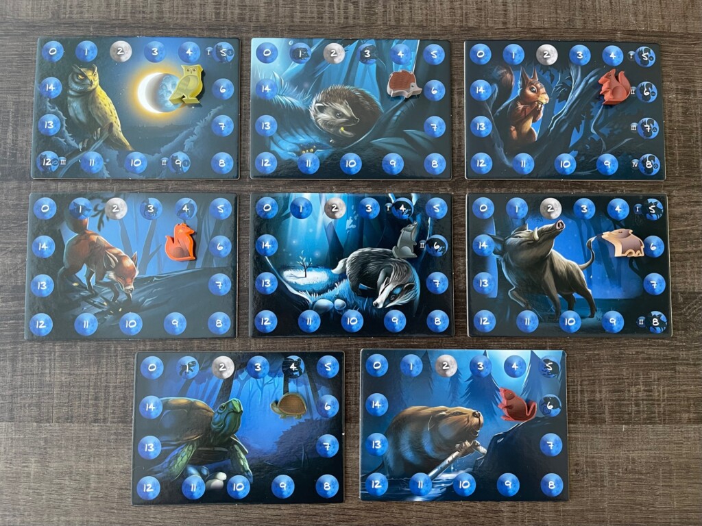 Elke keer wanneer de zon om het speelbord draait, beweegt ook het Maanfiche in tegenovergestelde richting mee. Wanneer jouw nachtdier in het pad van het maanlicht staat op het grote speelbord ontvang je hier maanpunten voor. Heb je uiteindelijk genoeg van deze punten verzameld dan kan je de unieke vaardigheden van je dierenvriend gebruiken om jou in het spel te helpen. Elk van deze diertje heeft zo zijn eigen speciale vaardigheden. Die kunnen variëren van het simpel omzetten van maanpunten naar lichtpunten maar ook bestaan uit toevoegingen die het speelbord zelf en/of de mogelijkheden van andere spelers beïnvloeden.