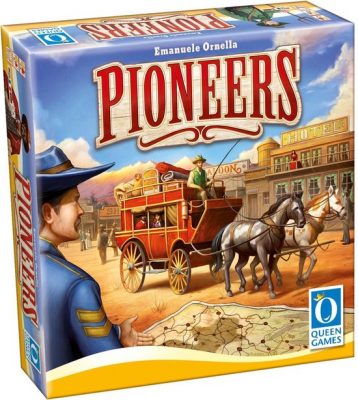 In het bordspel Pioneers reis je samen met de andere spelers in een postkoets door heel Noord-Amerika heen. Onderweg probeer je zo veel mogelijk pioniers van jouw kleur in de dorpen en steden achter te laten. Dat zorgt voor de nodige uitdaging want je bent niet alleen en voor je het weet gaat de koets de verkeerde kant op.
