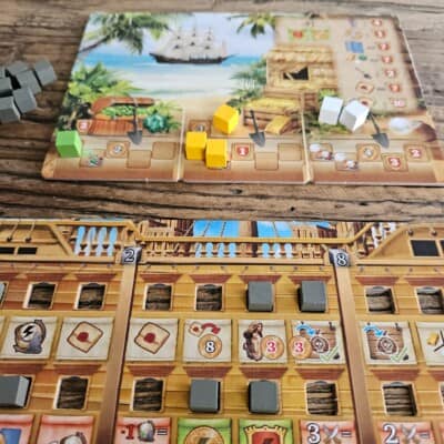 Visueel is het prachtig! Het piratenthema is mooi uitgewerkt en de materialen zijn van goede kwaliteit. Het Caribisch gebied en het schip komen echt te leven door de mooie stijl, het kleurgebruik en de aandacht voor details. Het ziet er gewoon prachtig uit en alleen al daarom leg je het graag op tafel.