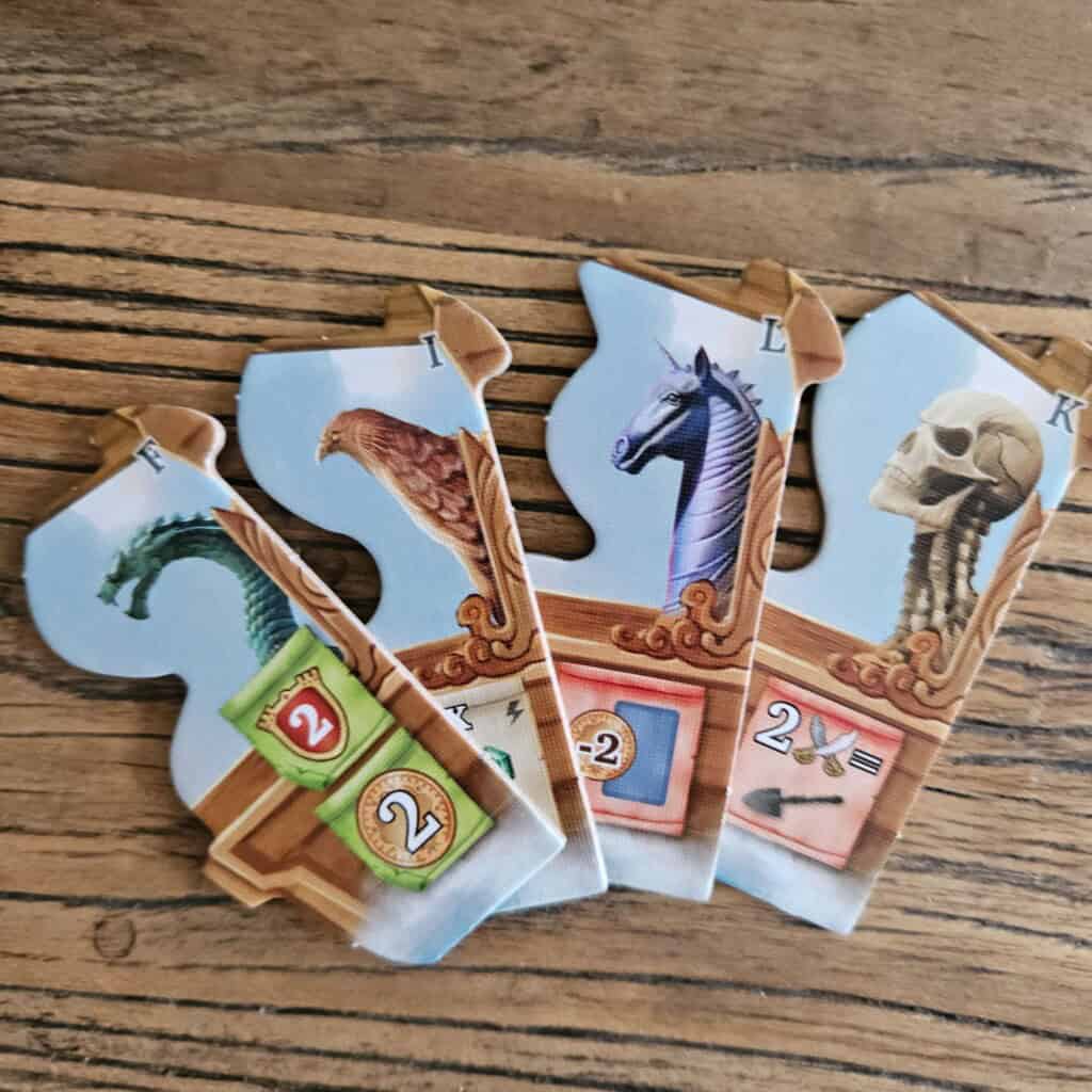 Minpuntje vonden wij in de eindtelling. Deze is veel werk en duurt te lang. Daarbij scoorden wij zoveel punten (>250) dat we ruim 5x het scorespoor rondliepen. Het scorespoor gaat namelijk maar tot 50 en met extra fiches maak je duidelijk hoeveel keer je deze al rondgegaan bent. Voor ons miste dit een zekere balans. Of het scorespoor had uitgebreider moeten zijn, of je zou niet zo hoog moeten eindigen. Wij denken een combinatie van beiden. Een scorespoor dat tot 100 zou lopen en een snellere, eenvoudigere eindtelling met minder punten.