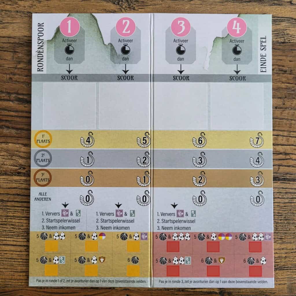 Waar je eerst voor elke nieuwe ronde standaard 6 munten en 1 ei ontving, mag je nu zelf een keuze maken. Degene die als eerste past, heeft de eerste keus enz. Op het tableau zet je je avonturier op een veld naar keuze, dit zijn dan de munten en/of middelen die je de volgende ronde ontvangt.
